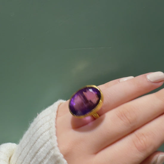 handmade Checker cut oval amethyst